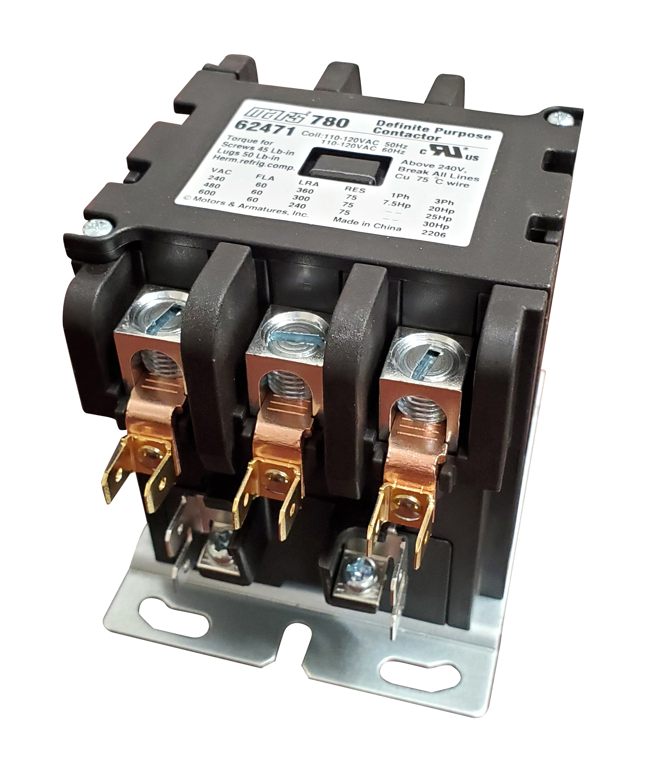 Home  >  HVAC/R Components  >  Contactors  >  MARS 780 Contactors  > 3P 60A 120V BOX LUG A2L